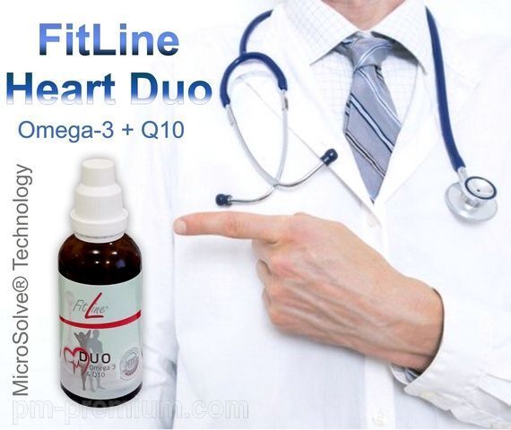Heart Duo FitLine — запатентованный мицеллированный комплекс с двойной силой и высоким биоусвоением. Содержит синергичную комбинацию Омега-3 жирных кислот (EPA и DHA), коэнзима Q10 и натурального витамина Е (токоферола).